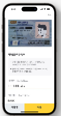계좌 개설에 필요한 개인 정보를 입력합니다. 이때 주민등록증 또는 운전면허증을 촬영하여 업로드해야 합니다.
