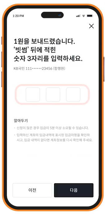 KB국민은행 계좌에서 빗썸 뒤에 적힌 숫자 3자리를 입력해 주세요