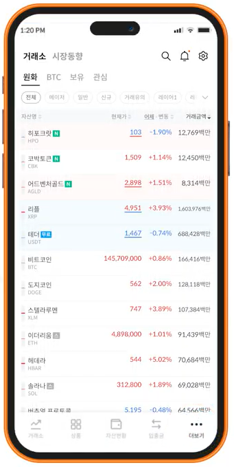 1. 빗썸앱 메인 화면 하단에 있는 더보기를 선택합니다.