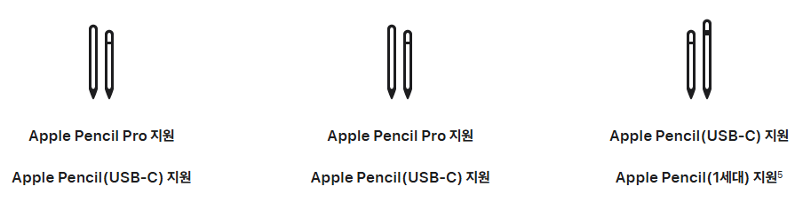 드로잉이 중요하다면 적어도 아이패드 에어와 애플 펜슬 프로 조합을 추천합니다.
